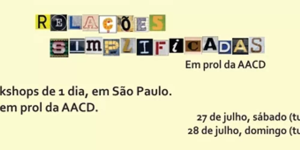 Gostaríamos de te fazer um convite: que tal participar do workshop Relações Simplificadas de um dia e ainda ajudar a AACD, esse centro incrível de cuidado e tratamento das pessoas com deficiência física?